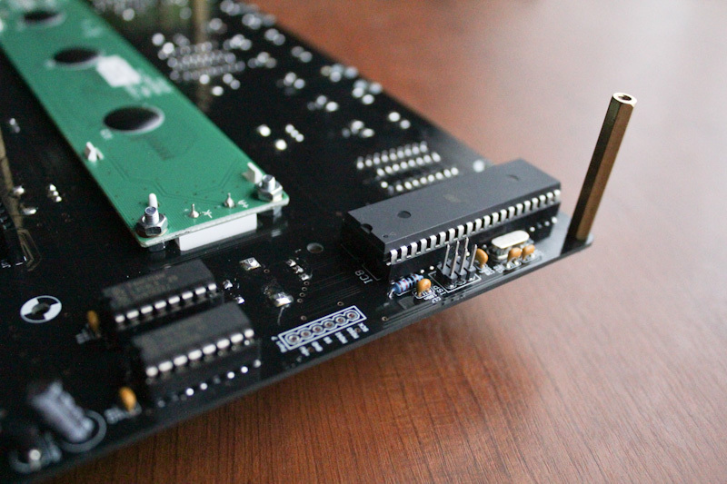Okey, I’m almost there. All essential stuff is mounted and soldered on the board. There’s just one scary part I need to do before I can put in the IC’s and fire it up. And that is testing. But even before that I need to a big inspection of the board. Check if there are no faults or shorts in the circuit. See if all components are soldered in right, check polarities, see if all component wires are cut properly, no contact points are touching because of bad soldering, no metal parts like the heat shields are touching the diodes or the legs of the voltage regulators. Again check the polarities of the capacitors. Check check check. And then I can start the testing.