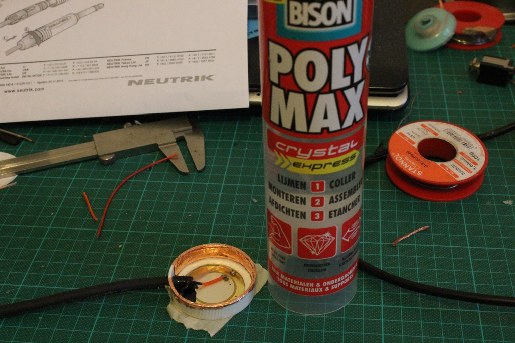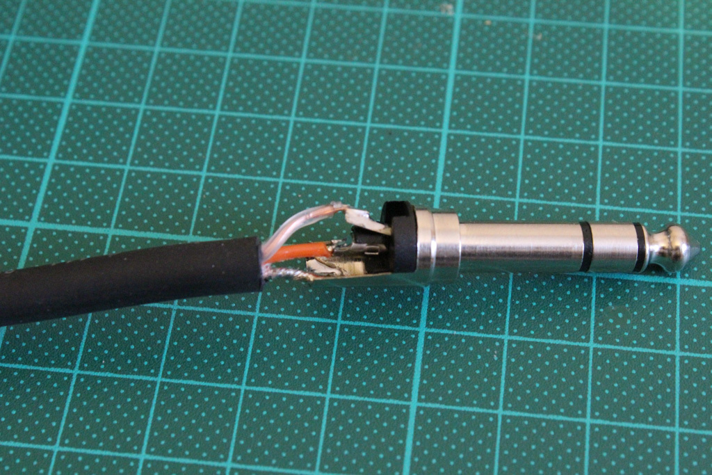 Making the connection cable with a 6.35 mm – 1/4 inch jack. I’m using good quality standard audio connectors consistently so I can easily interchange and connect everything with the gear I have and I can avoid adapters as much as possible.