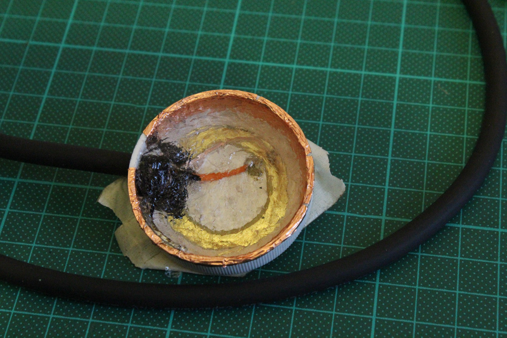 I wrapped everything in copper foil, cut out a 2mm thick piece of plastic in the shape of a disc to sit on the top of the container to make the whole thing a bit stronger.