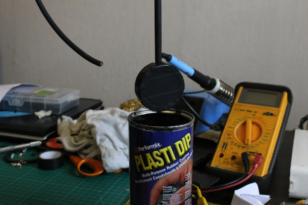 Dipping the whole microphone in Plasti Dip, so it will get a nice uniform rubber coating. Sealing it off from the elements. You need to do this very slowly. Instructions are on the can though.